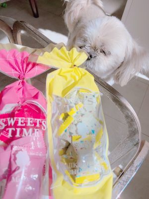 番犬くんもビニールの音に反応してコソコソ覗きに来ています☆